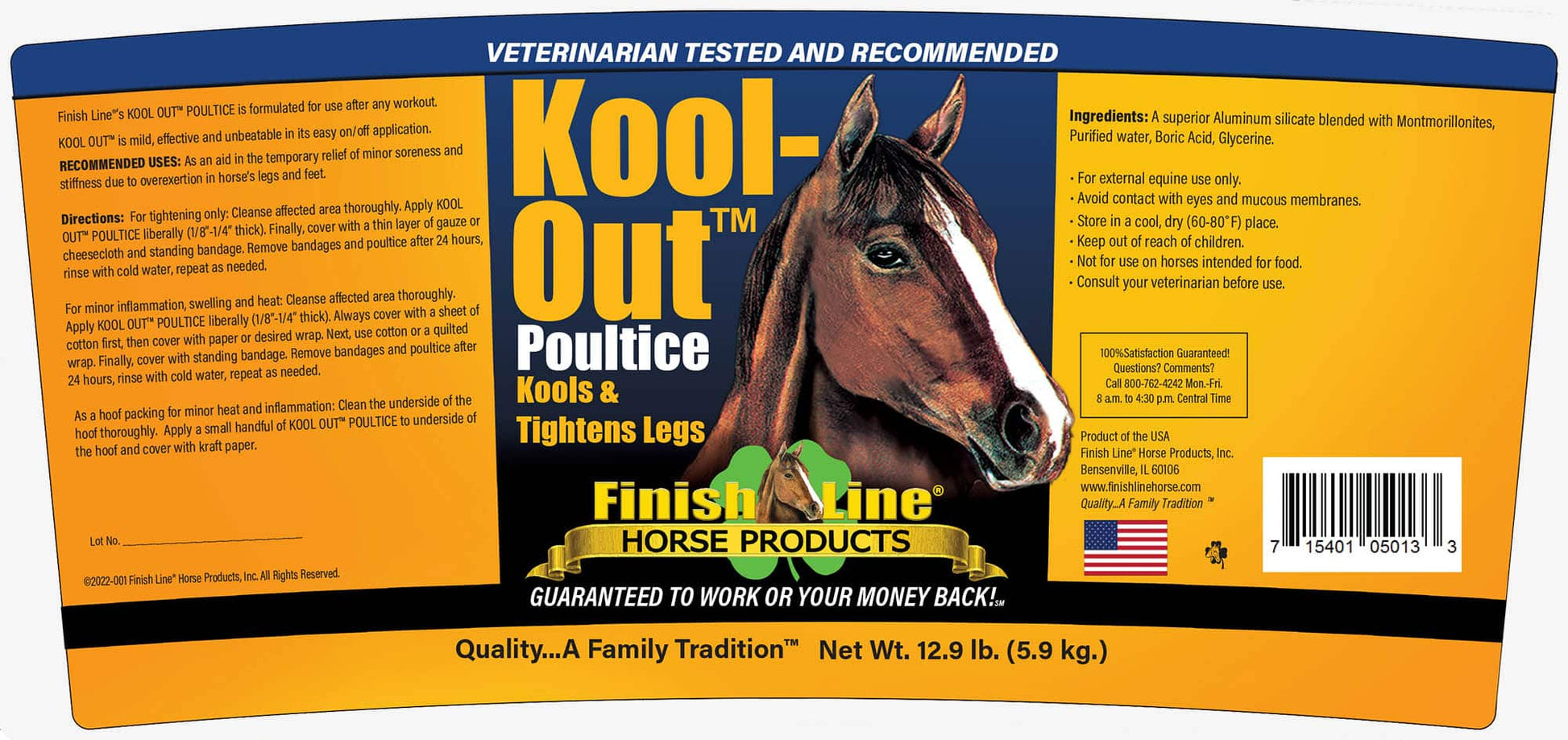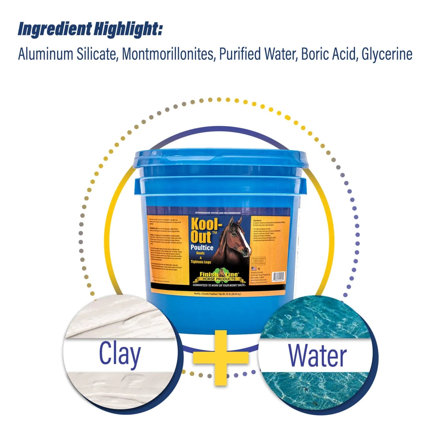 Kool-Out Poultice is a mild and gentle clay that can be used as an aid in the temporary relief of minor stiffness and soreness due to overexertion. This poultice is non-medicated and was formulated specifically for horses with sensitive skin. Kool-Out™ is gentle enough for daily use and can be applied over minor nicks and cuts without causing irritation. Works effectively to cool and tighten your horse’s legs after strenuous exercise.