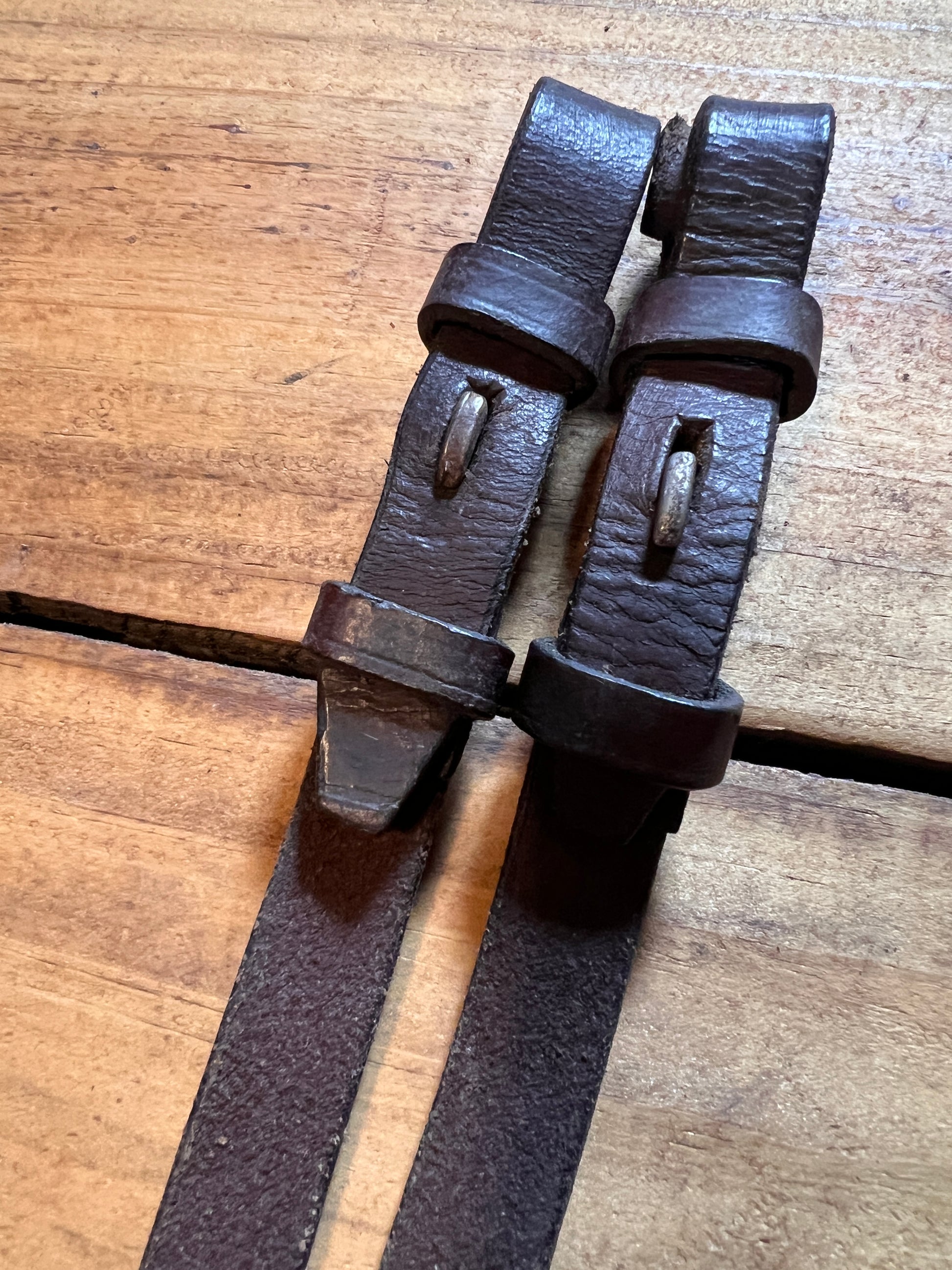 Excellent condition, lacing is intact, hooks good, has all keepers. A little older - some rust in the hooks but definitely still usable with some conditioning. Measures 57” total 114” end to end.